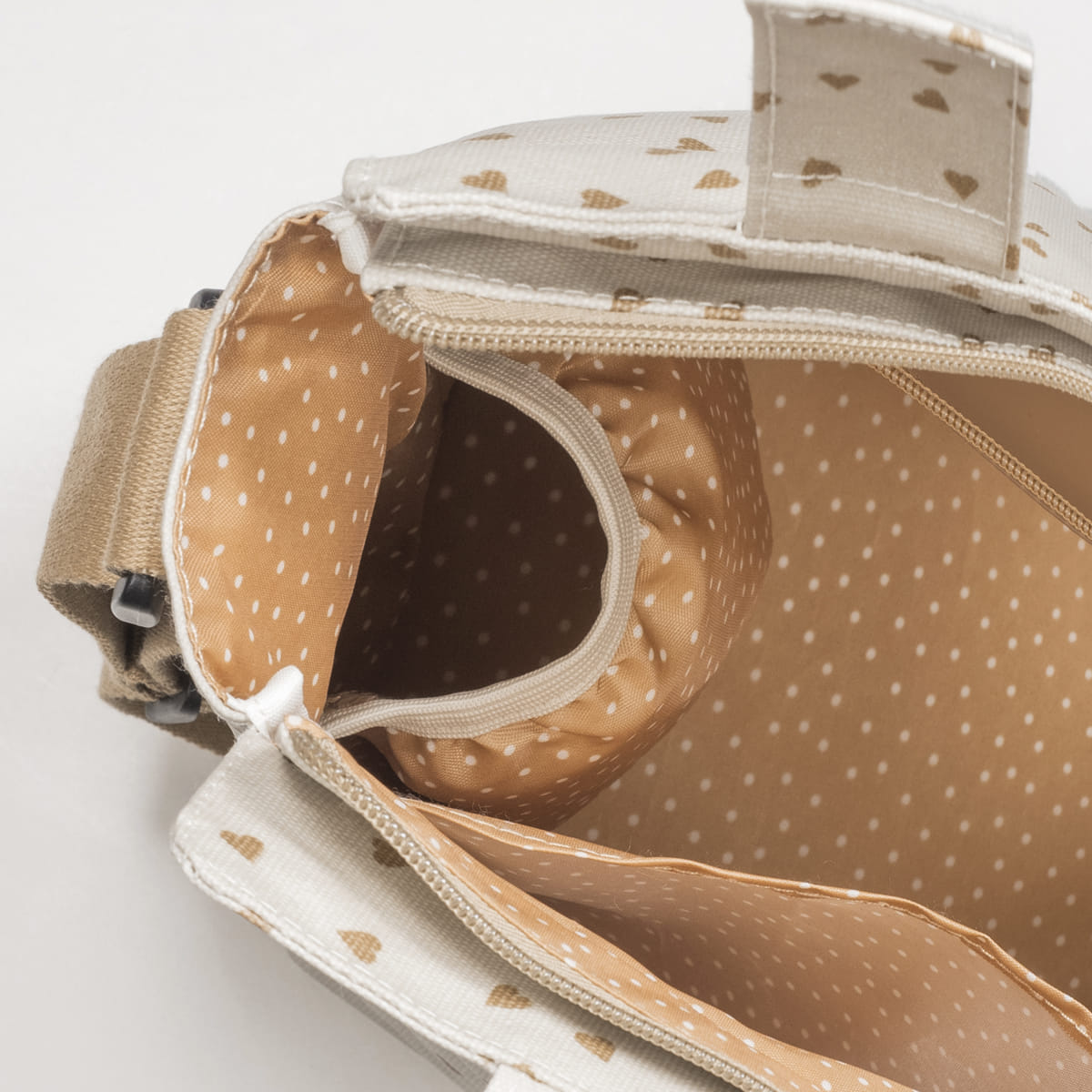 Torba za prematanje Poppy Cinnamon s uzorkom srca za kolica dolazi s podlogom za prematanje vaše bebe. Ova lagana, izdržljiva i prostrana torba u obliku košare dizajnirana je da nosi sve što vam je potrebno za izlaske s bebom.