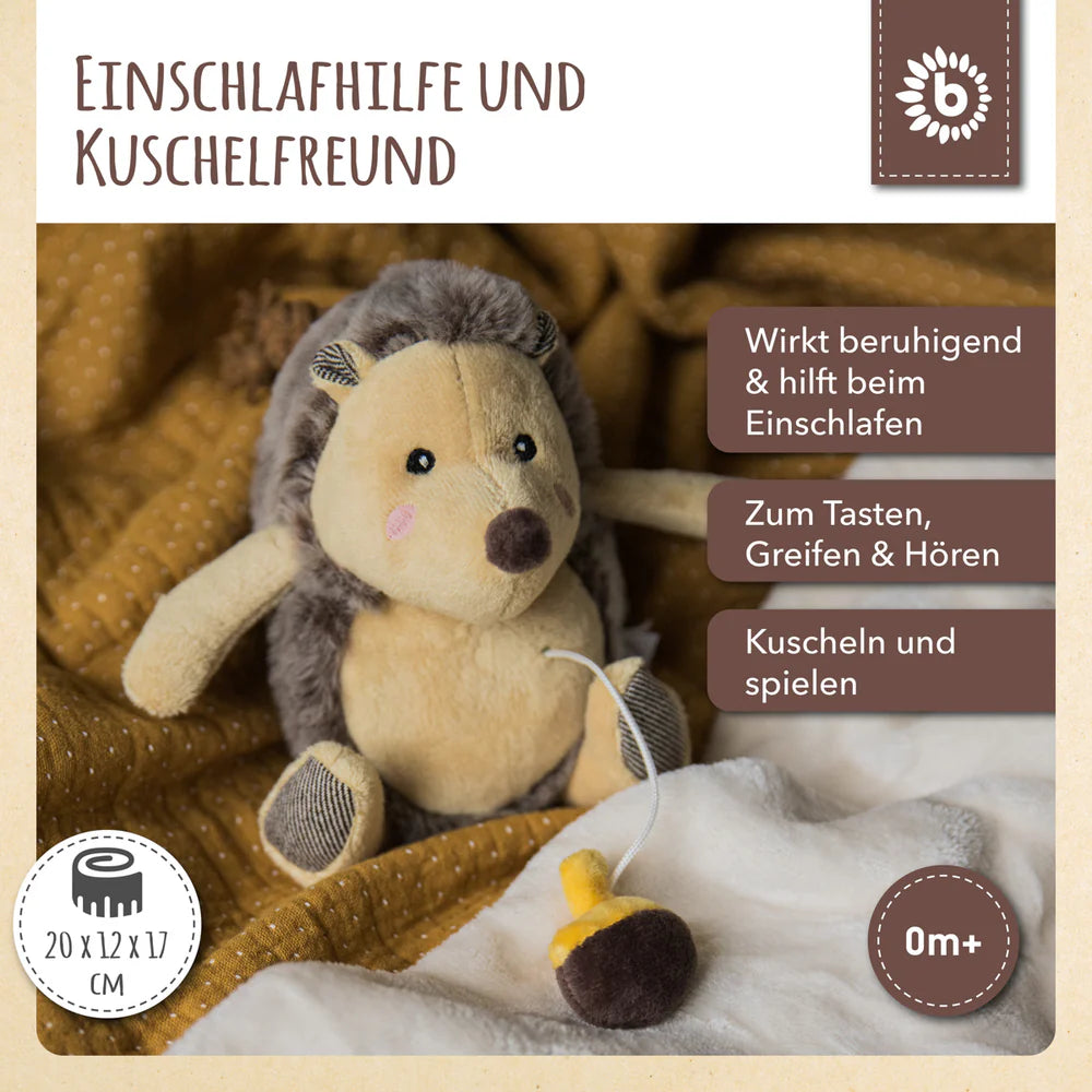 Savršen mali pratitelj za miran san! Plišani jež Piksi svira poznatu uspavanku „Dobro večer, dobra noć“, a baršunasto je mekan i idealan za pritiskanje, hvatanje i maženje. Njegove prirodne boje i praktične trakice omogućuju da bude uz vaše dijete gdje god ide, pomažući mu da mirno zaspi i uplovi u ugodne snove.