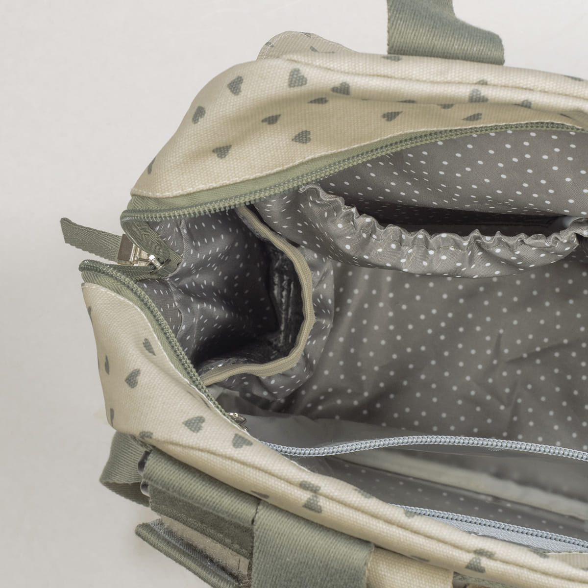 Poppy Moss torba za prematanje s uzorkom srca za kolica višenamjenski je model koji se može koristiti kao klasična torba i ruksak, savršeno spajajući moderni i urbani stil s funkcionalnošću. Omogućuje vam da sa stilom i lakoćom nosite sve potrebne stvari za vas i vašu bebu tijekom svakog izlaska.