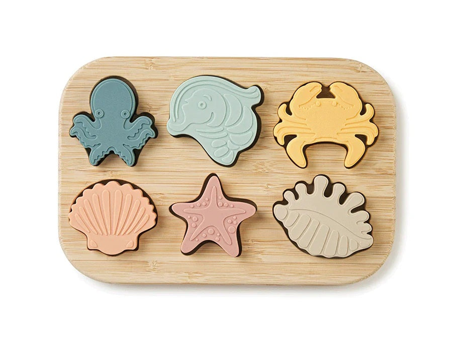 Zabava pod morem! Ove male morske životinje stigle su kako bi zabavile vaše mališane. Ova slagalica s teksturama, edukativna je igračka koja pomaže djetetu naučiti prepoznavati oblike i boje te razvijati finu motoriku i hvat, dok pokušava umetnuti dijelove na pravo mjesto. Potaknuti će prirodnu dječju znatiželju. Baza je izrađena od bambusa, a dijelovi od silikona prehrambene kvalitete — ekološki prihvatljivog materijala s brojnim prednostima: antibakterijski je, izuzetno otporan i ne deformira se jer je vrlo fleksibilan. Savršeno za korištenje kao grickalica! U skladu s normama EN 71, ASTM F963-17 i CPSIA.
