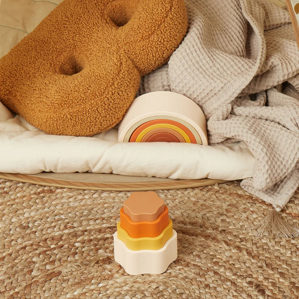 Set od 4 silikonska cvijeta savršen je za slaganje i spajanje, što potiče razvoj fine motorike i koordinacije kod djece.