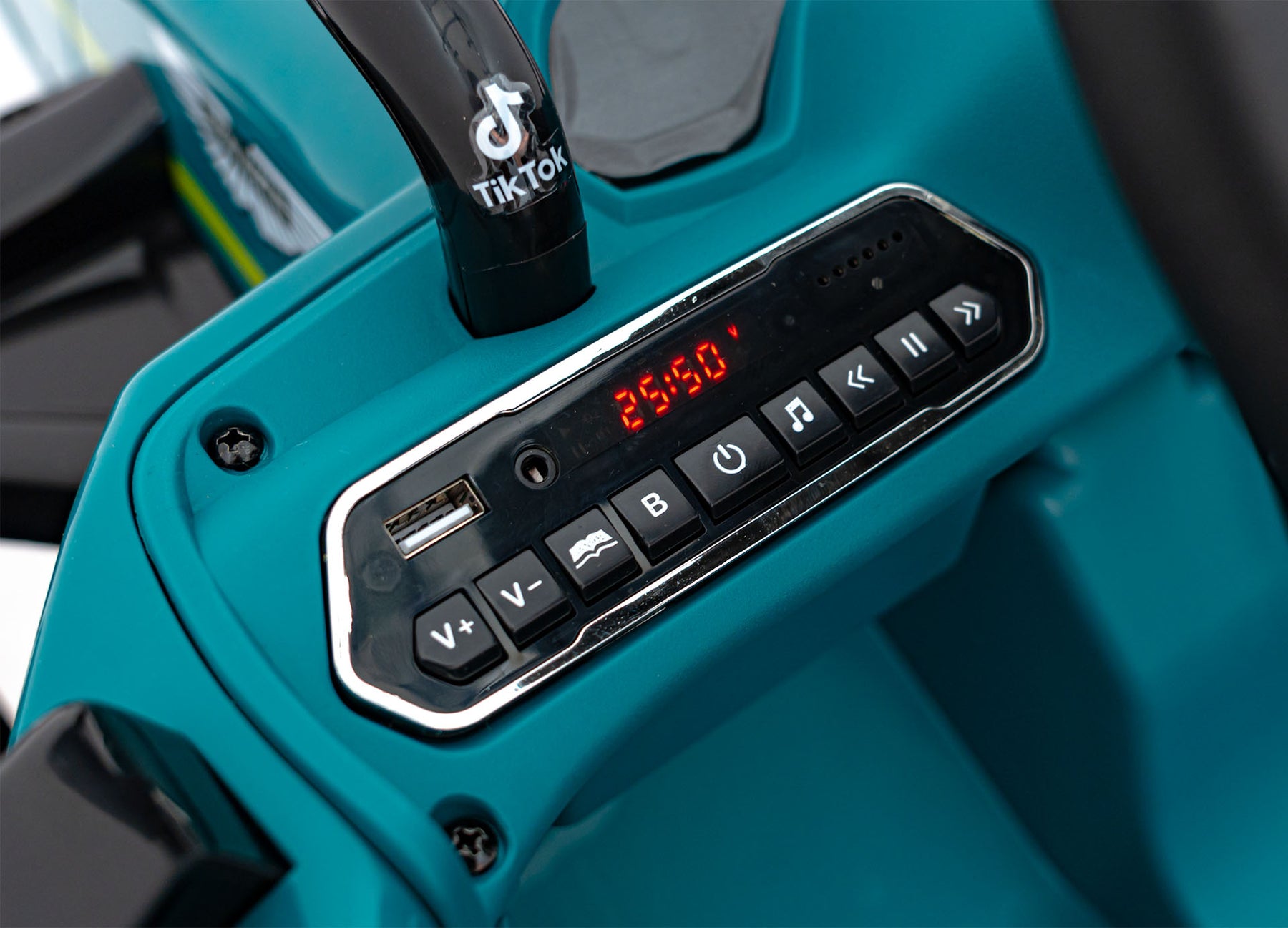 Mali vozači mogu slušati omiljenu glazbu putem bogatog audio sustava koji podržava MP3, Bluetooth, USB i AUX povezivanje. Na volanu se nalaze tipke sa zvučnim efektima i melodijama, što dodatno pojačava zabavu tijekom svake vožnje.