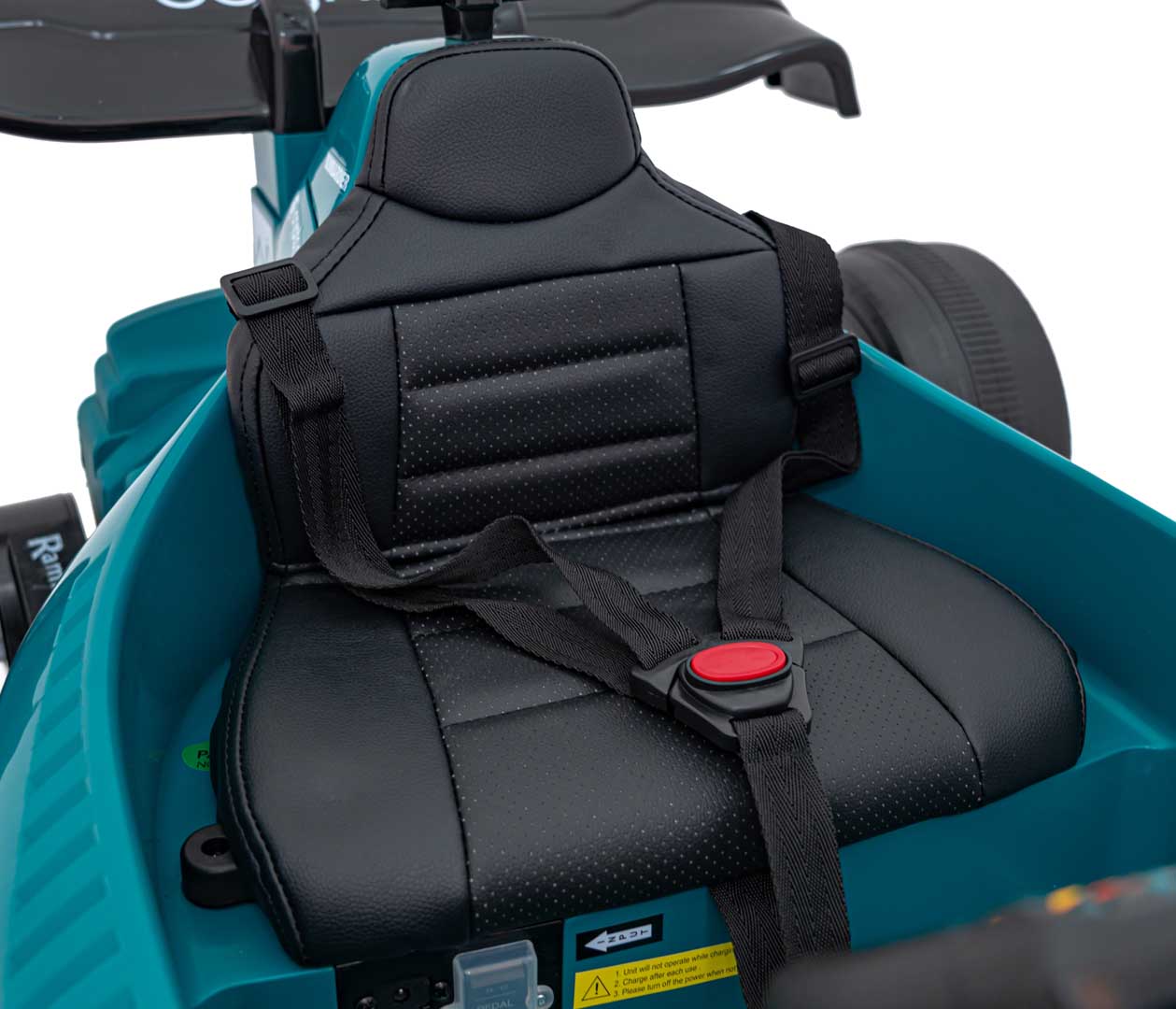 Opremljen s četiri motora (2 × 25 W + 2 × 50 W) i baterijom 24 V / 5 Ah, Aston Martin Formula 1 pruža impresivne performanse i stabilnu vožnju. Funkcija sporog pokretanja (Slow Start) osigurava glatko kretanje bez trzaja, dok mogućnost vožnje naprijed i nazad omogućuje potpunu kontrolu. Roditelji mogu nadzirati vožnju putem daljinskog upravljača (2.4 GHz) s tri brzine i sigurnosnom STOP tipkom za trenutačno zaustavljanje vozila.