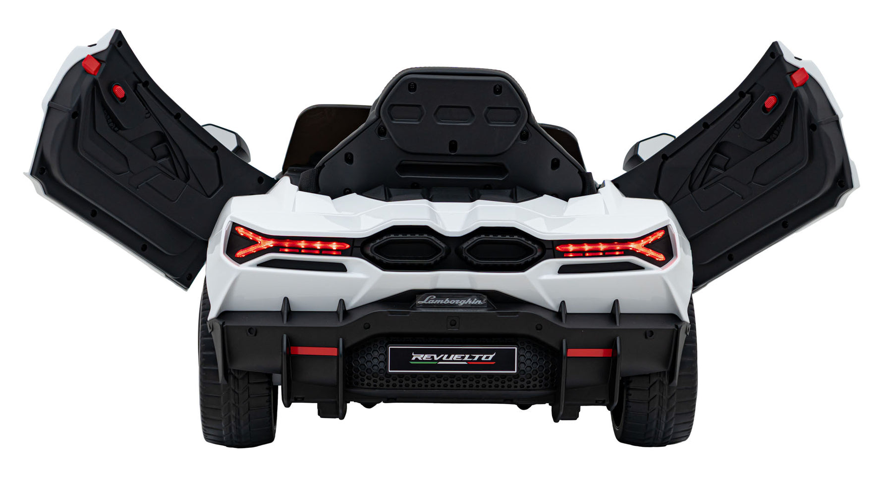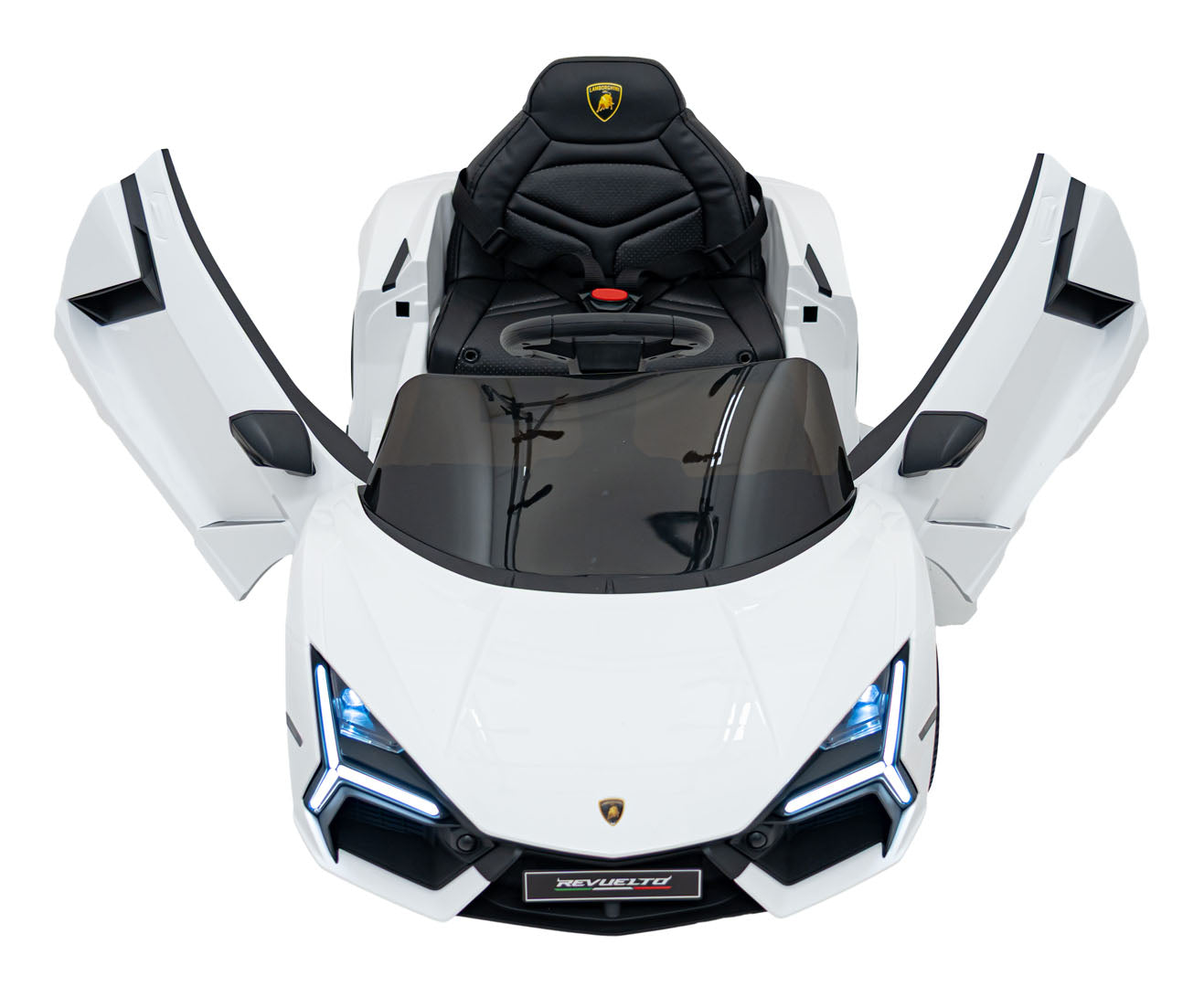 Električni automobil Lamborghini Revuelto pravi je san svakog malog vozača! Impresivnog dizajna i vrhunskih performansi, kombinira snagu, sigurnost i luksuz. Ovaj model nudi realističan doživljaj vožnje s efektima svjetla i zvuka, udobnim kožnim sjedalom i daljinskim upravljačem za sigurnost roditelja.