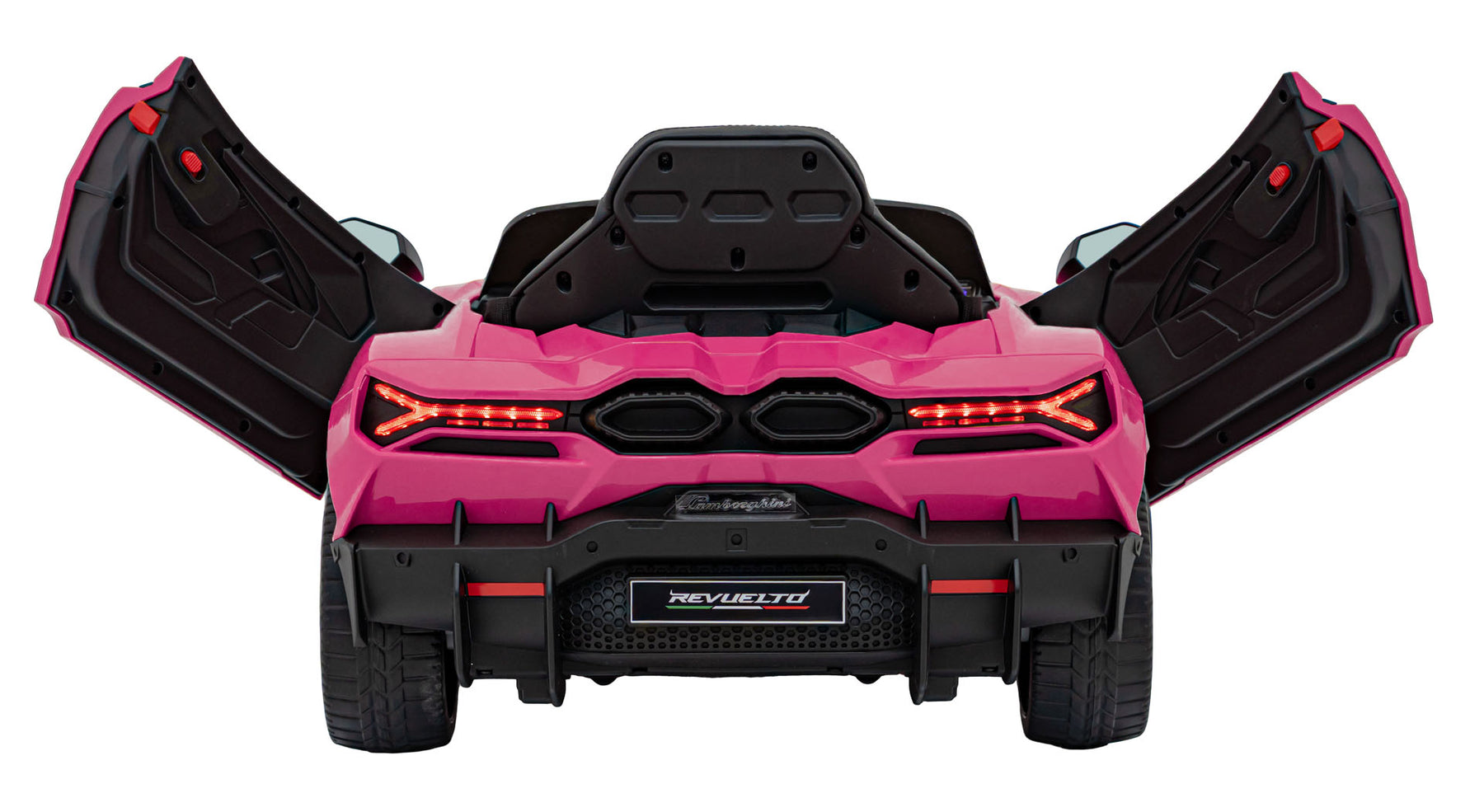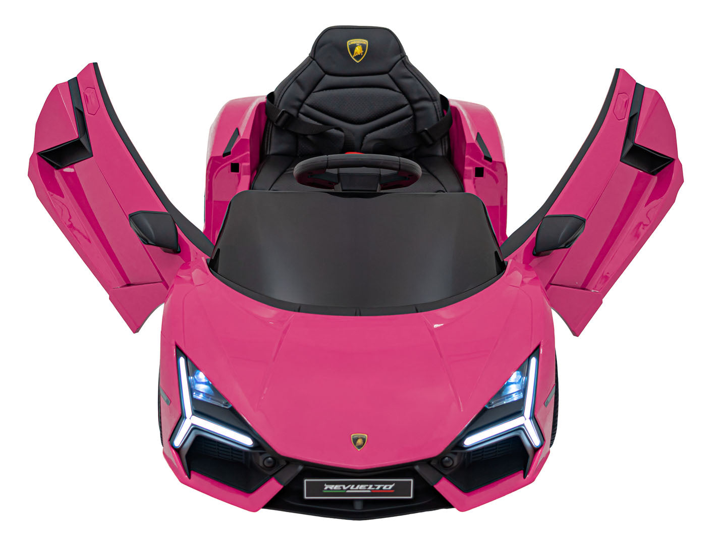Električni automobil Lamborghini Revuelto pravi je san svakog malog vozača! Impresivnog dizajna i vrhunskih performansi, kombinira snagu, sigurnost i luksuz. Ovaj model nudi realističan doživljaj vožnje s efektima svjetla i zvuka, udobnim kožnim sjedalom i daljinskim upravljačem za sigurnost roditelja.