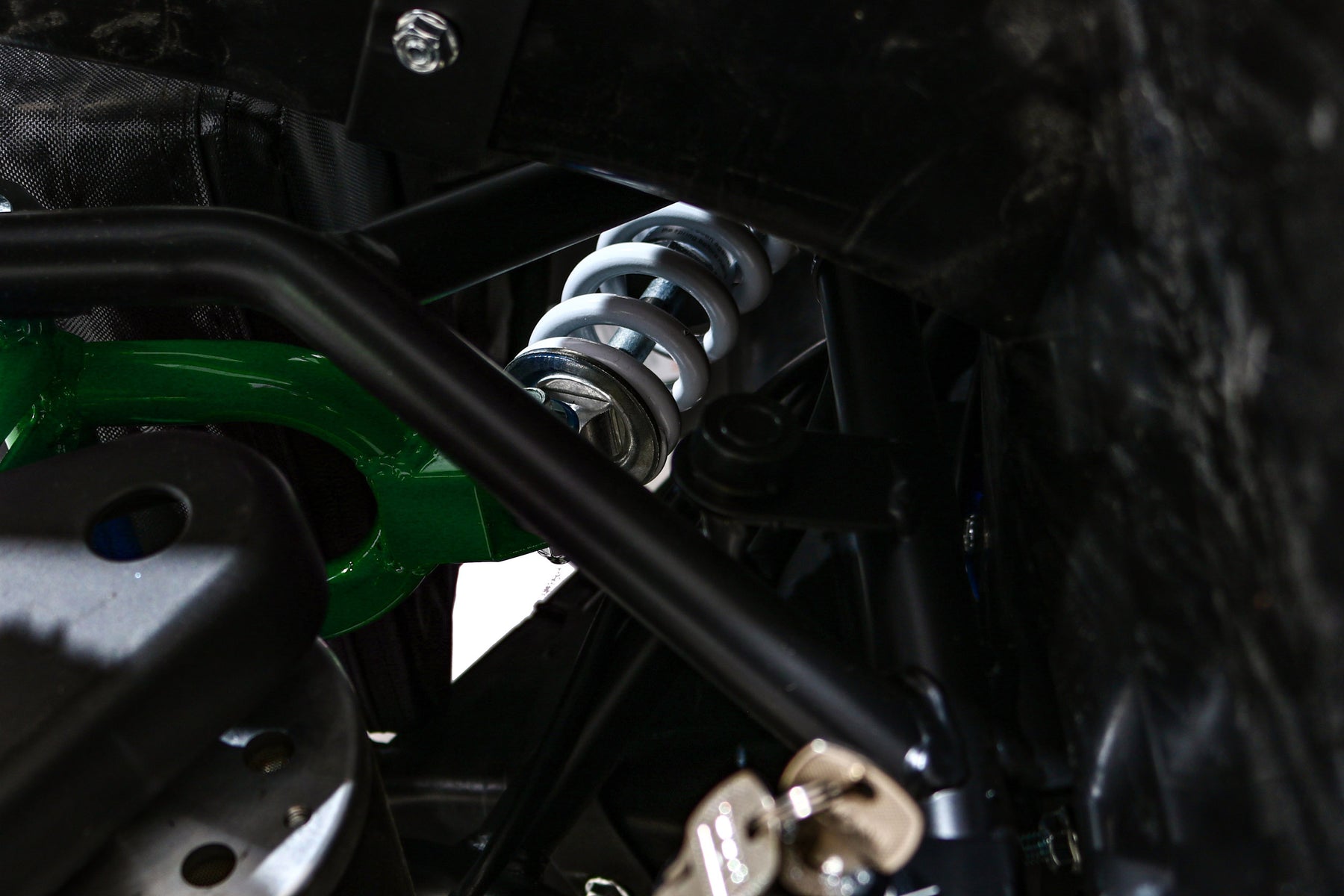 Sjedalo dimenzija 40 × 20 cm od eko-kože sadrži sigurnosni pojas, osiguravajući udobnost i zaštitu vozača. Maksimalna nosivost quada je 65 kg, čime je pogodan za stariju djecu i tinejdžere.