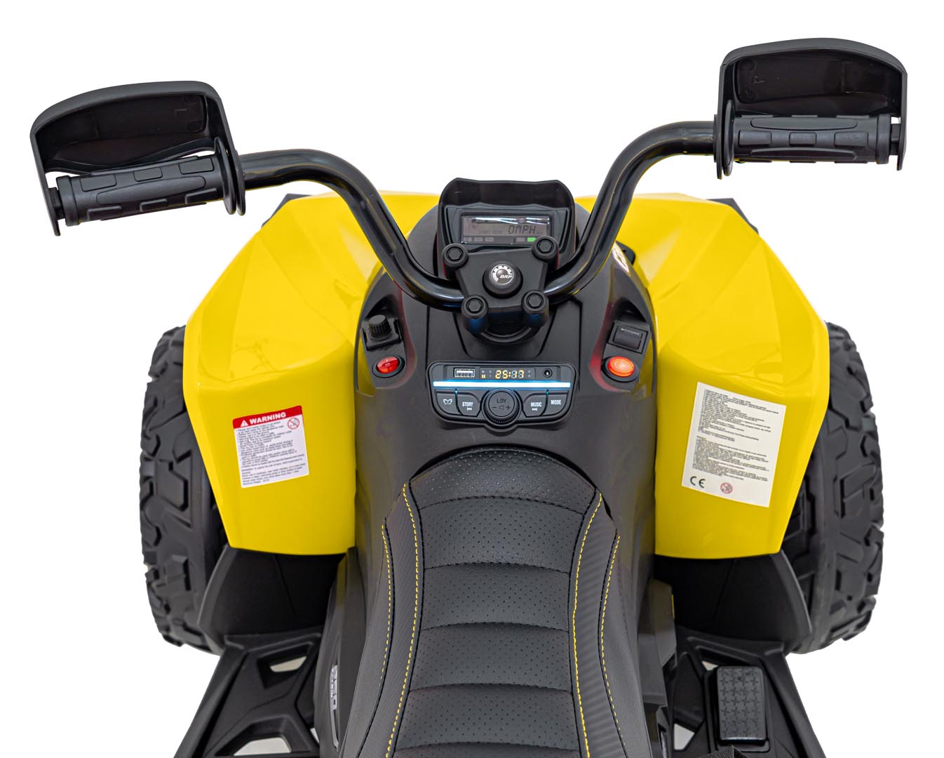 Sjedalo od crne eko-kože dimenzija 40 × 23 cm pruža udobnost, dok stražnja ručka omogućuje lakše transportiranje vozila kada nije u uporabi. Maksimalna nosivost quada je 30 kg, što ga čini pogodnim za većinu djece.