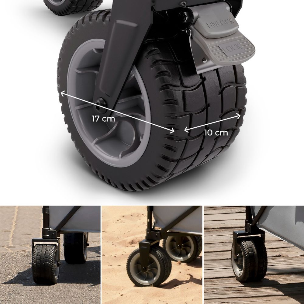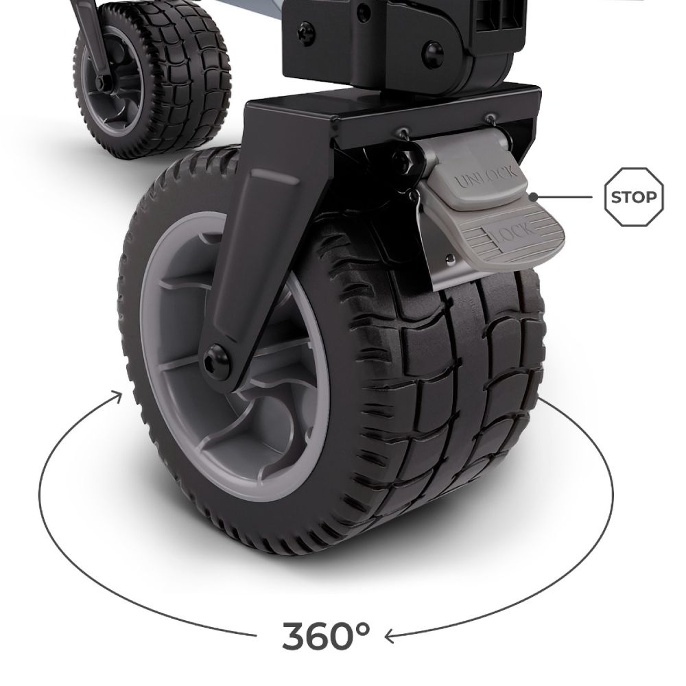 Veliki PVC kotači promjera 10 cm lako savladavaju svaki teren – od pijeska, kroz travu, do šljunka.