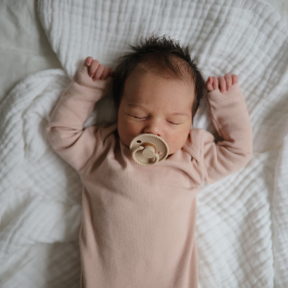Linija duda od gume FRIGG® pažljivo je dizajnirana za udobnost vašeg dojenčeta. Oblik dude izvana omogućuje sisanje čak i za dojenčad s osjetljivom kožom. Dvije rupice omogućuju protok zraka tijekom sisanja. Duda FRIGG®, dostupna u raznim nježnim bojama, prekrasan je dodatak vašoj kolekciji dječjih potrepština.
