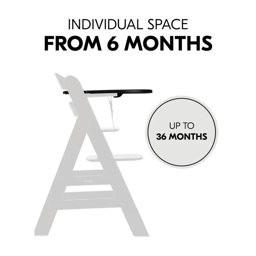 Jednostavno se pričvršćuje klik-sustavom na vašu Alpha+ hranilicu, omogućujući vašem djetetu da samostalno jede i igra se na vlastitom stoliću – od 6 do 36 mjeseci starosti.