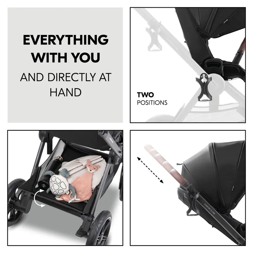Praktičan držac za piće i velika košara za sve potrepštine čine svakodnevicu jednostavnom. Pomoću adaptera, autosjedalicu možete jednostavno pričvrstiti na kolica. Kompatibilna je s Hauck Drive N Care i mnogim drugim popularnim modelima autosjedalica.