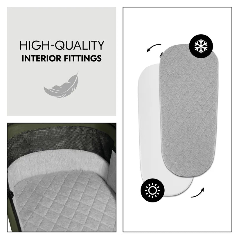 Set kolica Hauck Comfort N Care odlikuje se vrhunskom kvalitetom dizajna, materijala i izrade, prikladan je za dijete od rođenja do 22 kg. Zahvaljujući pamučnoj podlozi i madracu s ljetnom i zimskom stranom, vaše dijete spava udobno i sigurno, kao na oblaku.