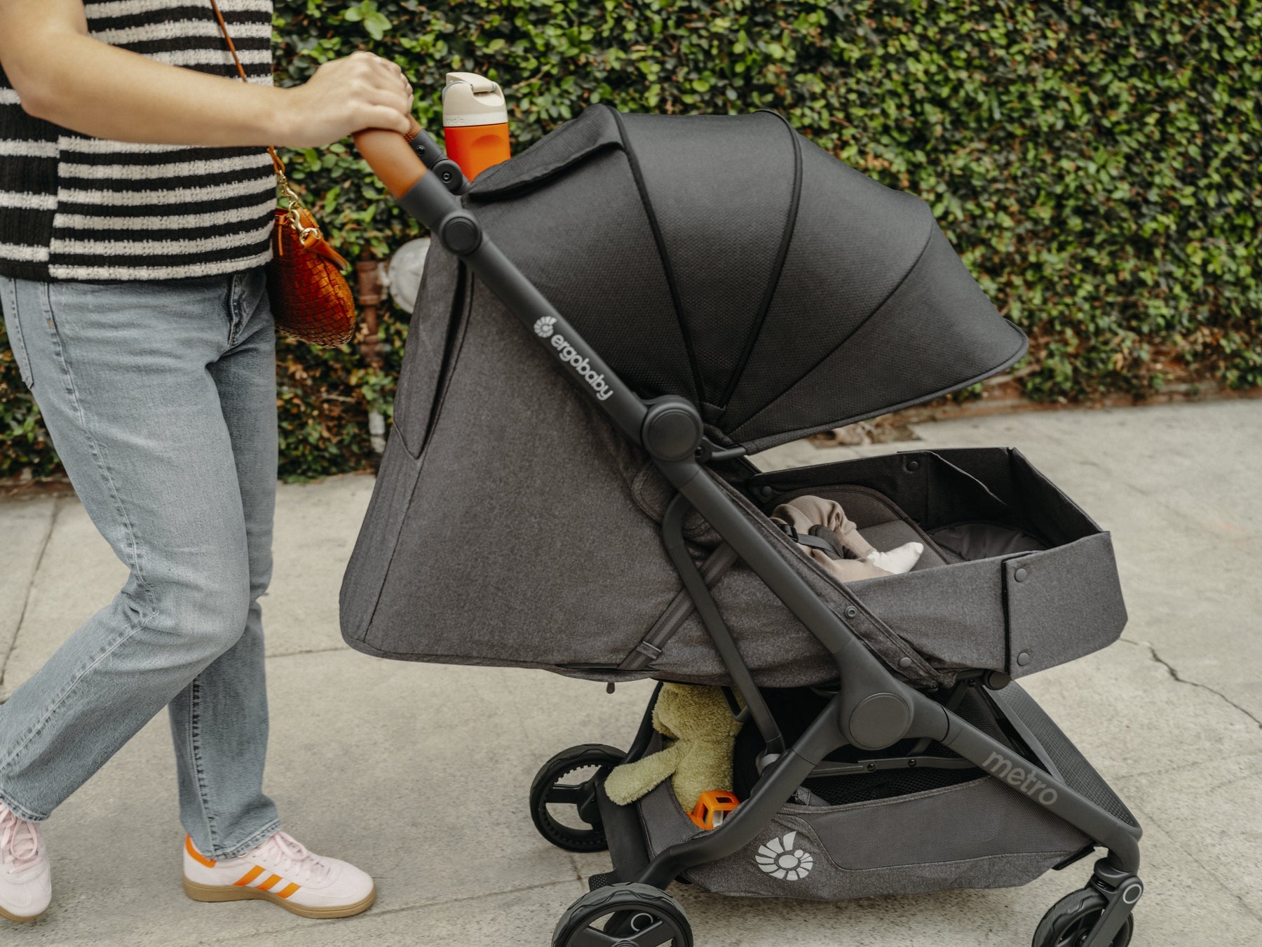 Ergobaby Metro3 Deluxe savršena su kompaktna kolica s uključenim dodacima, dizajnirana za obitelji u pokretu! MALE DIMENZIJE, VELIKE AVANTURE Automatsko sklapanje jednom rukom i jednostavno rasklapanje Metro 3 Deluxe čine funkcionalnim kolicima za svakodnevne avanture. Sklopljena kolica odgovaraju dimenzijama ručne prtljage većini aviokompanija (56 x 44 x 23 cm). UDOBNOST BEZ KOMPROMISA Ergonomski dizajniran sjedeći dio s neograničenim brojem nagiba u kombinaciji s podesivim osloncem za noge vašem će mališanu pružiti potrebnu udobnost. Visinom podesiva ručka s novim ergonomskim dizajnom, izrađena od premium smeđe kože, omogućava roditeljima pravilnije držanje tijekom vožnje te prilagodbu ovisno o potrebnoj visini (od 101 do 108 cm). UGODAN SAN NA KOTAČIMA Uz potpuno prilagodljiv sjedeći dio, ergonomski dizajn i amortizaciju na prednjim i stražnjim kotačima, Metro 3 Deluxe lako se može nositi s neravnim terenom, čineći ga idealnim za putovanja i svakodnevne avanture. KORIŠTENJE OD ROĐENJA Metro3 Deluxe dolazi s integriranom košarom za novorođenče koja se jednostavno i lako formira iz sjedećeg dijela pomoću bočnih pregrada. Metro 3 Deluxe kompatibilan je s autosjedalicama te se može koristiti kao 3u1 sustav (Cybex, Nuna, Maxi-Cosi, Avionaut, Britax, BeSafe) . SVAKODNEVNA PRAKTIČNOST Prostrana košara za stvari kapaciteta do maksimalno 10 kg omogućava pohranu svega što vam je bitno - torba za pelene, osobne stvari, namirnice...Uz to, Metro 3 Deluxe dolazi s još većim, produživim krovićem tkane teksture koji je vodoodbojan te s UPF 50 zaštitom. Prozor za bebe omogućava provjeru i bliskost u svakom trenutku. UKLJUČENI DODACI Metro 3 Deluxe dolazi s prednjom zaštitnom ručkom od smeđe kože, držačem za čašu/bočicu te kišnom zaštitom. Za lakši transport sklopljenih kolica, tu je uključeni rameni pojas.