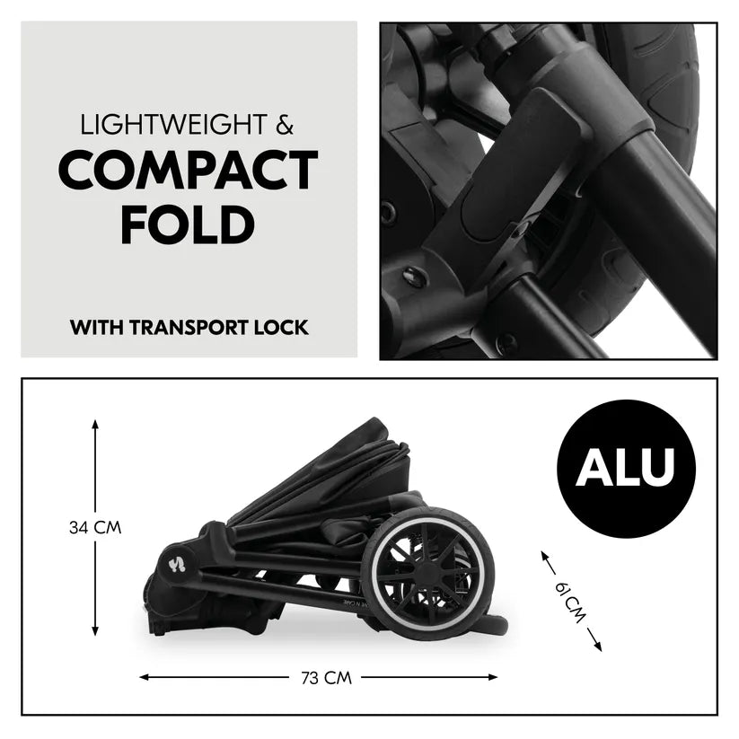 Zahvaljujući čvrstom aluminijskom okviru, teleskopskoj ručki podesivoj po visini i sigurnosnoj blokadi za transport, kolica su jednostavna za vožnju i sklapanje.