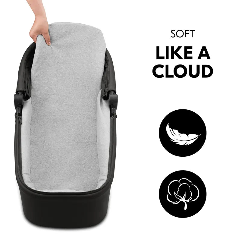 U mekanoj košari za novorođenče s pamučnim madracem, mekanim stranicama i navlakom za noge, beba spava udobno kao na oblaku.