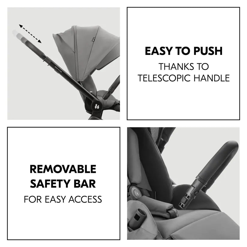Zahvaljujući čvrstom aluminijskom okviru, teleskopskoj ručki podesivoj po visini i sigurnosnoj blokadi za transport, kolica su jednostavna za vožnju i sklapanje.