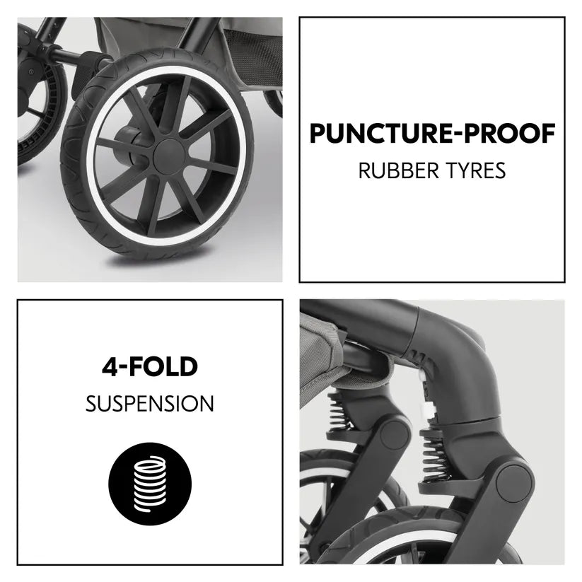 S gumenim kotačima otpornima na probijanje i ovjesom na 4 kotača, Move N Care jamči udobnu vožnju po svim terenima.