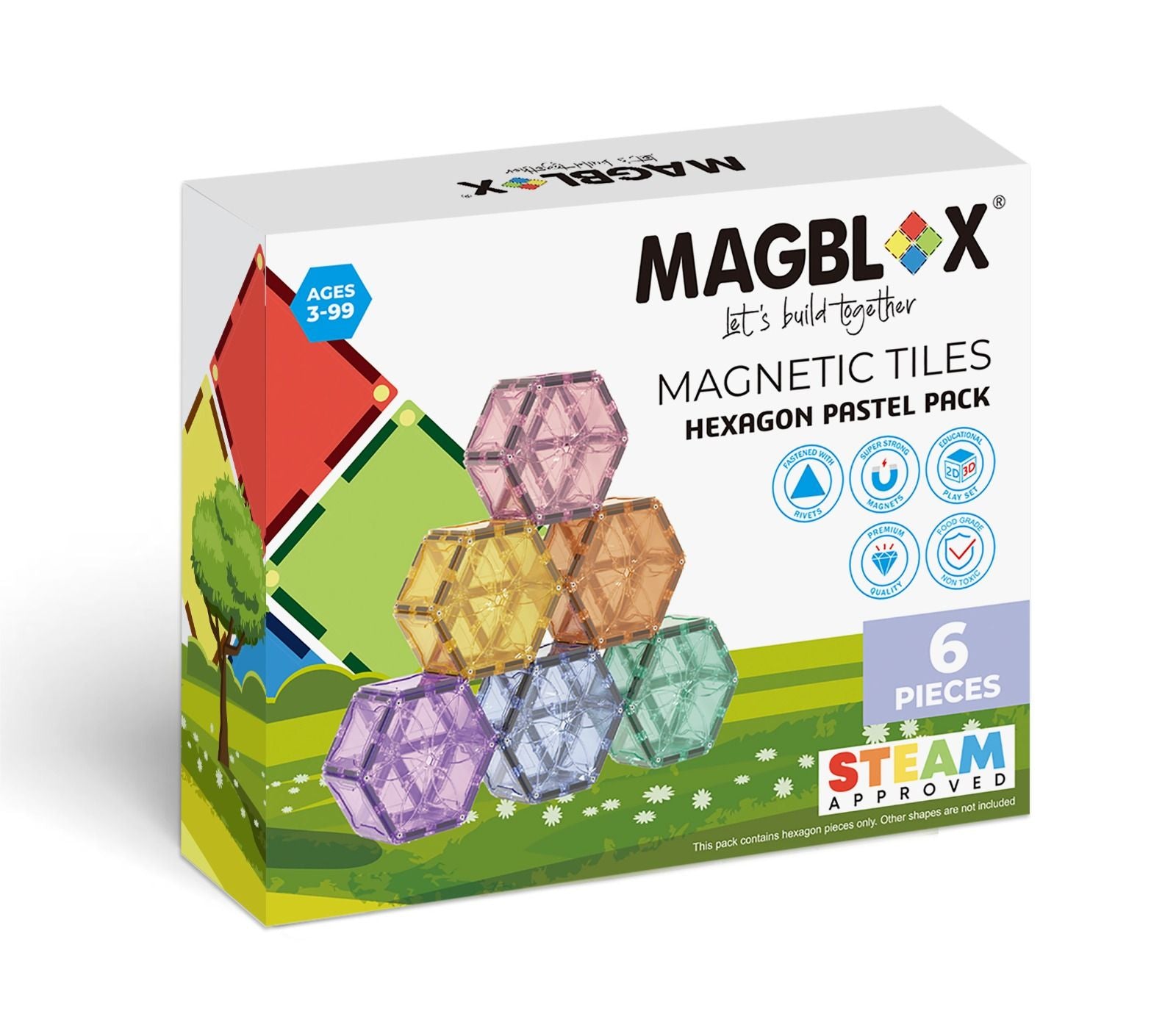 Magblox® nudi paket od 6 heksagona kao dodatak vašoj postojećoj kolekciji magnetskih pločica.