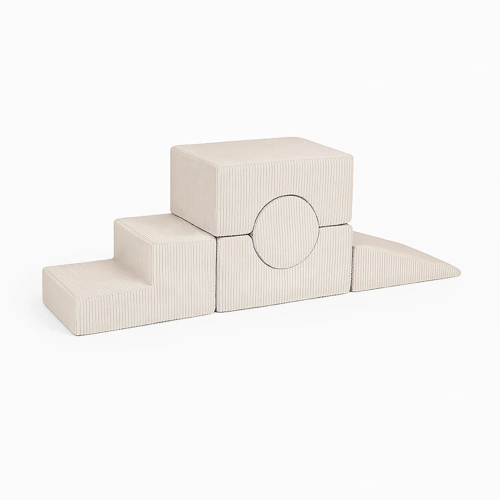 Aesthetic set potiče razvoj kroz dodir, ravnotežu i samostalnost. Moduli se mogu slobodno slagati kako bi se stvorile stepenice, sjedalice ili male penjalice. Navlake s patentnim zatvaračem olakšavaju čišćenje, a mekana pjena djetetu pruža osjećaj udobnosti i sigurnosti.