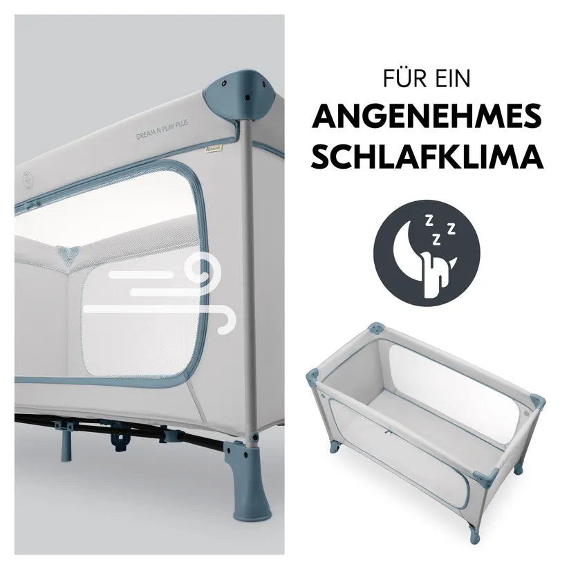 Dream N Play Plus pruža ugodan prostor za spavanje i igru u bezvremenskom dizajnu, pogodan za djecu do 15 kg.