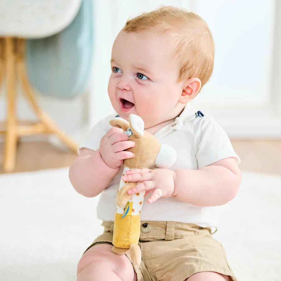 Upoznajte Lea, preslatkog plišanog magarčića sa zviždaljkom, dizajniranog da zabavi i potakne vašu bebu. Zanimljiv zvuk ove mekane igračke stimulira bebina osjetila i potiče rani razvoj te radoznalost. Ovaj mazni suputnik savršen je za grljenje, istraživanje i igru, čineći ga neizostavnim dijelom svake bebine kolekcije igračaka.